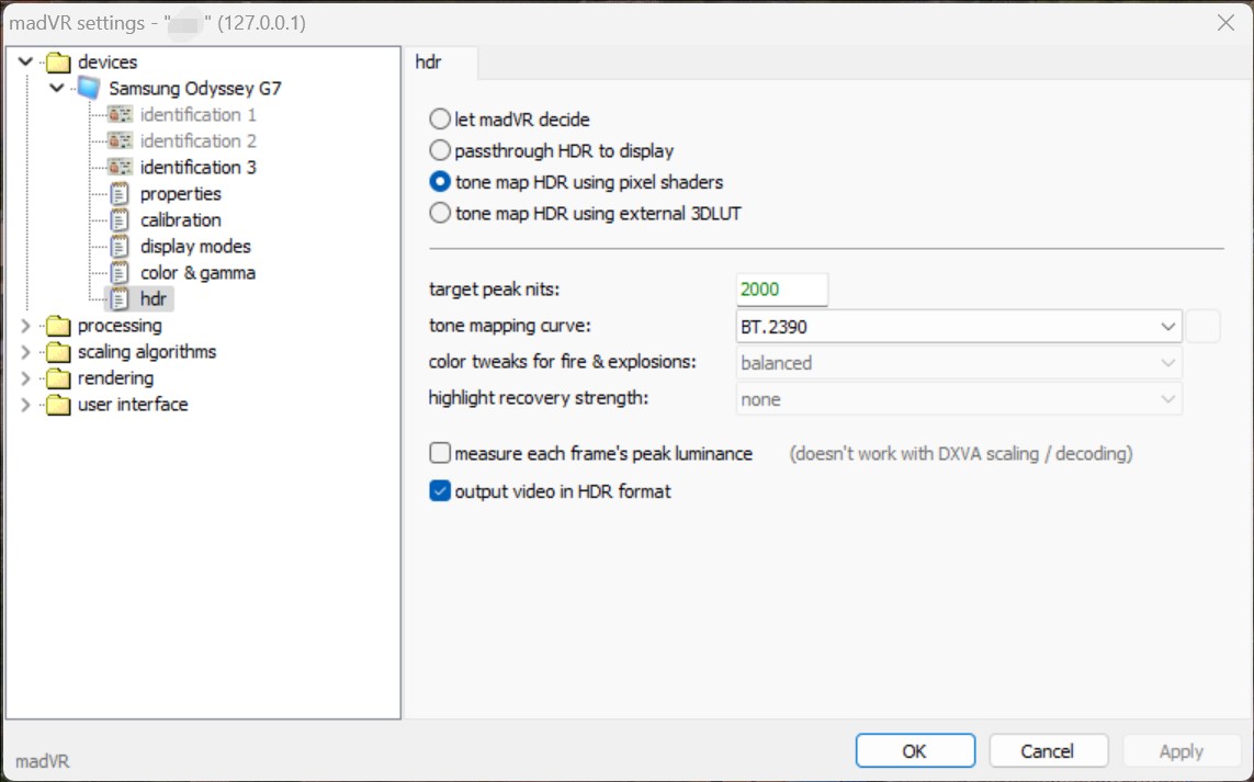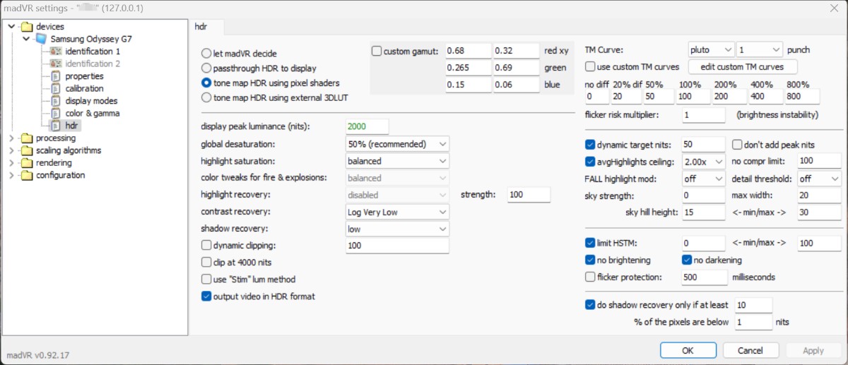 下图是最新版的madVR里面的HDR设置。